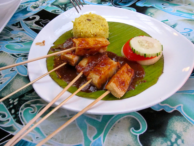 At Champor Champor (Malay for "all mixed up") - deeeelicious dinner! Starting out with tofu sate (above).